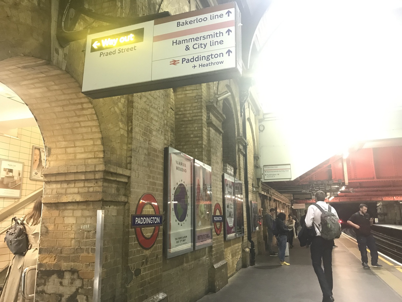 空港からパディントンまでヒースローコネクトで移動して、地下鉄へ乗り換え。