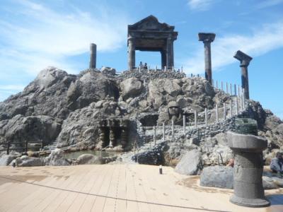 新島の湯浜露天温泉は、無料の露天温泉です。パルテノン宮殿を思わせる村営の温泉施設です。
