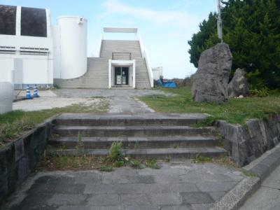 新島の波止場から南側に進むと、新島ガラスアートセンターの建物が見えてきます。
