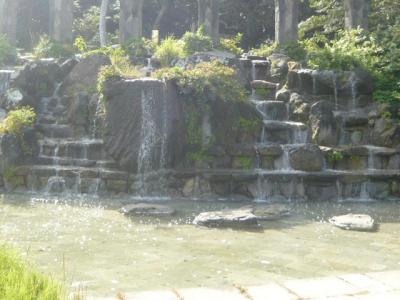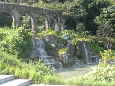 新島の特徴となっている変成岩をふんだんに使ったモニュメントの中に、豊かな水が流れています。