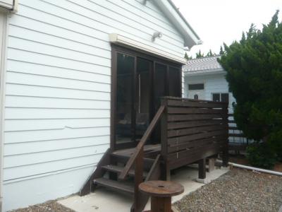 羽伏浦海岸に向かう道路の傍に、母屋がありますが、コテージとして宿泊する棟は、奥にあります。