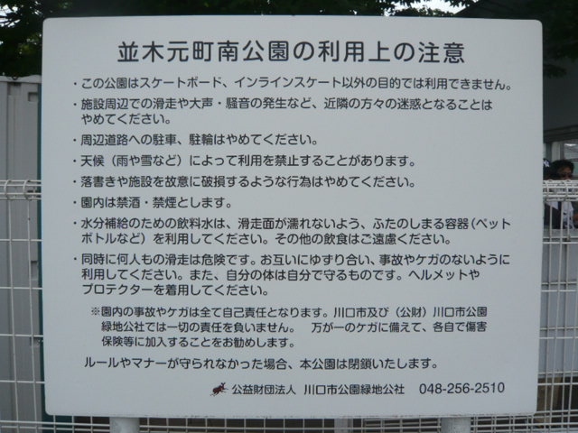 「川口スケートパーク」の正式名称は、「並木元町南公園」という名称のようです。管理は、川口市の公園緑地公社が担当しています。公社に電話して確認したところ、川口スケートパークという名称は、通称ですとの回答でした。