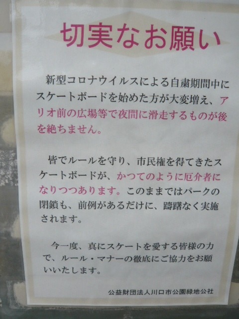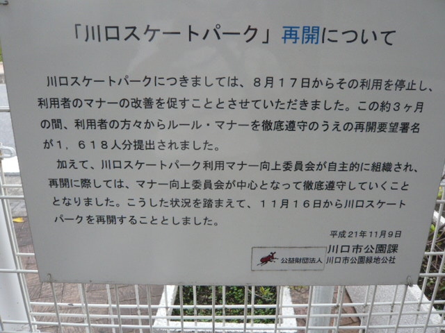 場所を探し当てれなかった、大きな理由は、「川口スケートパーク」という表示が、文字で掲げられていないことが、判りにくくしている最大の原因です。
