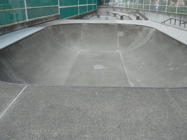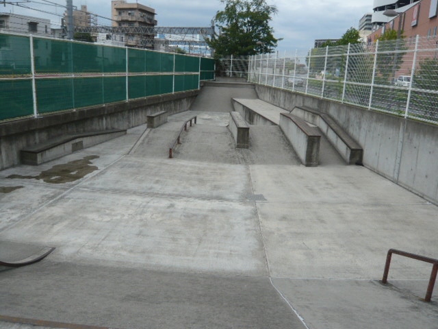 川口スケートパークは、京浜東北線と川口アリオの間に位置している三角形の施設を指しています。