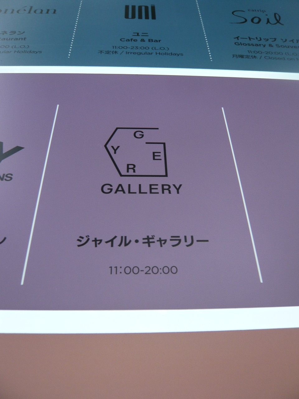 同潤館2階のベランダの天井には、軒下の表参道の道路から見えるように、ギャラリー同潤会の文字が、記載されています。