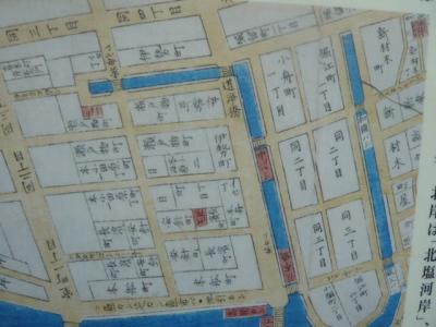 国会図書館の江戸切り絵を見てみますと、伊勢町と堀留町の地名が載ってます。
