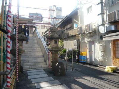 日本橋堀留町の出世稲荷神社の場所は、とても判りにくいです。路地の奥の建物の中にあります。