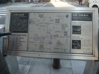人形町通りの歩道に、教育委員会の立てた解説板が、ポツンと立っていました。