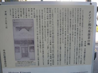 メイゾン鴻乃巣は、明治の末期、ここ日本橋の鎧橋の袂の地で創業し、西洋料理専門店として、またFIRST CLASS BARとして一世を風靡したそうです。その後、日本橋に移転し、最後は、小伝馬町で閉店するまで、営業を続けました。