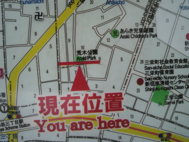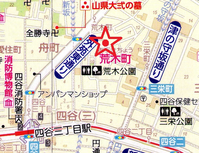 江戸時代の絵地図には、荒木横丁としての名称が残っていて、現在の荒木町の住所の由来かと思われます。- 旅行時期
