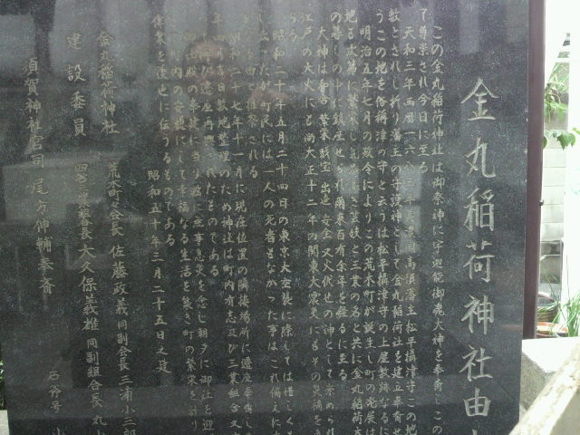 金丸稲荷神社は、荒木公園の一角の敷地の提供を受け、祀られている神社です。