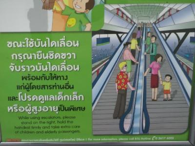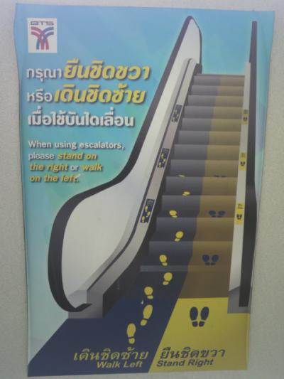 BTSアソーク駅で、エスカレーターで立つ場合は、右側に立ち、左側を開けておくこと、そして歩いて昇る場合は、左側を歩くこととの標示がありました。