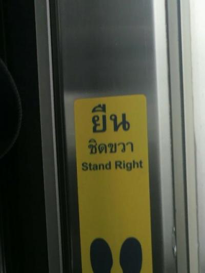BTSアソーク駅で、エスカレーターで立つ場合は、右側に立つとの標示がありました。
