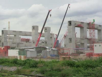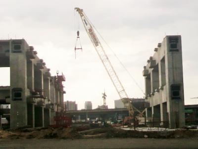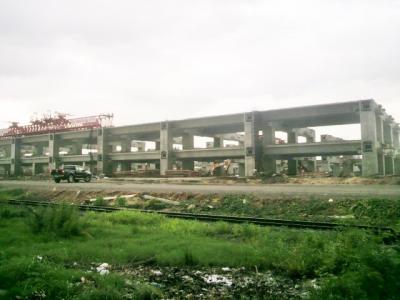 新設バンスー駅は、現バンスー駅の東側に建設中で、3階層構造の地上部分が見られます。