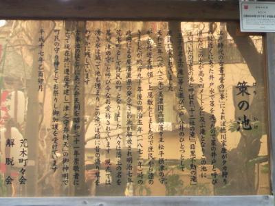 津の守弁財天は、徳川家康が鷹狩の際、使った鞭を洗ったといわれる池とその傍の神社が有名な場所です。