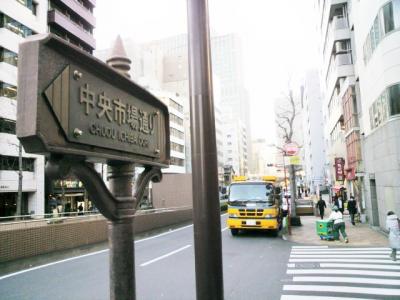 中央市場通りは、銀座の昭和通りから築地の中央市場に通じています。