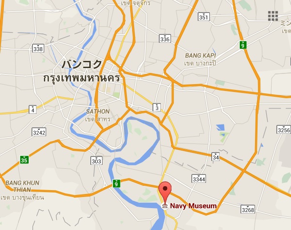 タイ海軍博物館は、国道3号線沿いにあり、海軍兵学校の向かいにあります。