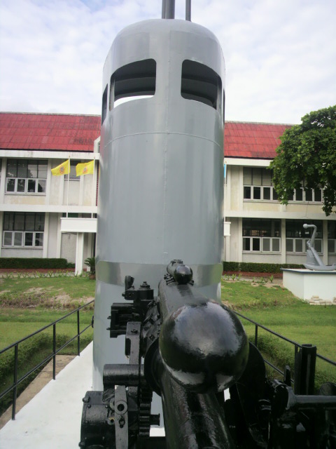 海軍兵学校の敷地内には、日本において建造されたトンブリ号の艦橋部分が置かれています。