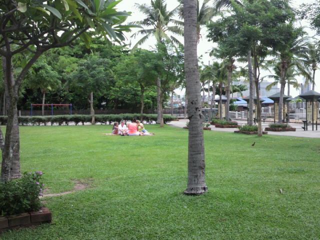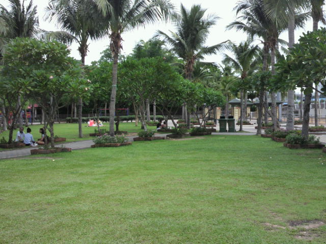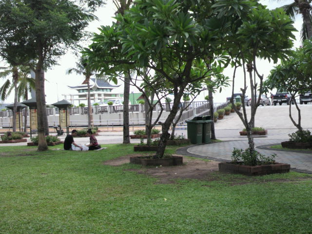 ナクルアの海鮮市場の横に、芝生の緑が目に痛いばかりのナクルアのランポー公園があります。