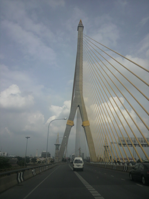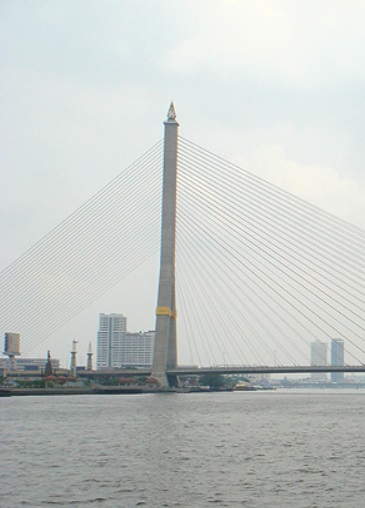 ラーマ8世橋は、主塔から広がる指示索が、幾何学的に広がる構造の橋で、金色の指示索の広がりがとても綺麗に見え、チャオプラヤー川に映えている橋です。