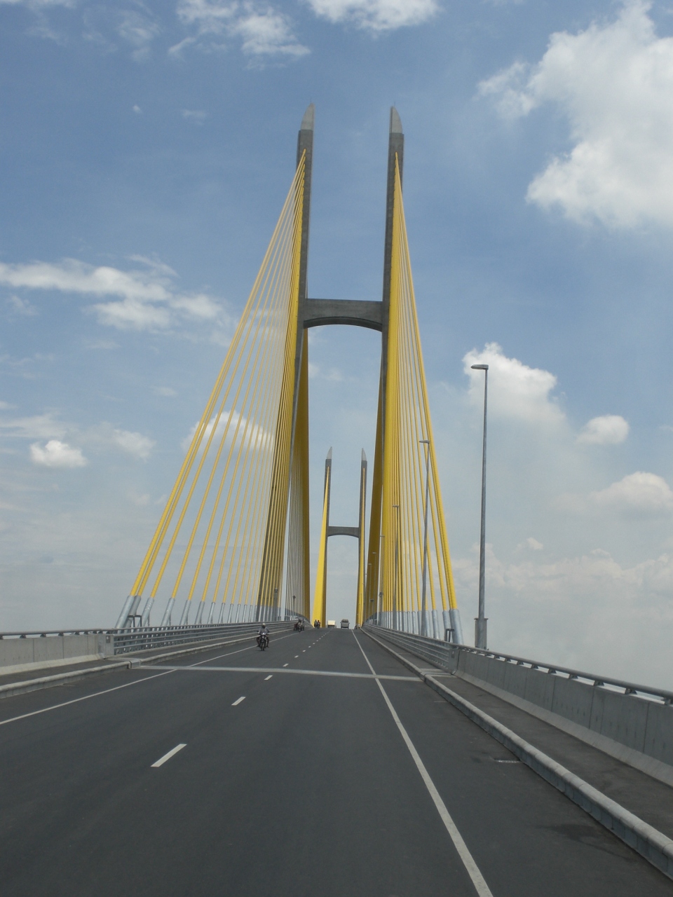 構造としては、異なりますが、印象としては、日本の資金援助でできたメコン川に架かる「つばさ橋」とも似ている部分があります。