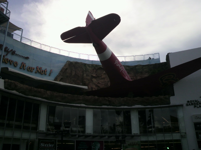 ロイヤル・ガーテンプラザの入口に飛行機が突入している像は、印象の強いものがあります。