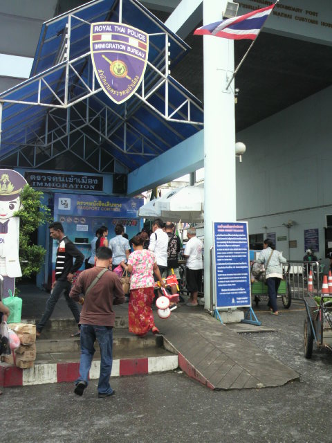 ミャンマーへの国境の街メーサイの入出国管理局には、安心感があります。