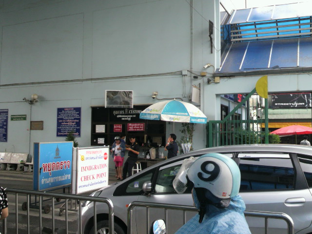 10米ドルか500バーツか、差額はピンハネか等等、いろいろな紹介記事に書かれていた入国の際の手数料も、10米ドルで済みました。最初500バーツと言われましたが、財布を2つ準備していて、予定どおり10米ドルと380バーツしか入っていない方の財布を見せ、「バーツがない。米ドルならある。」と言うと、すんなり10米ドルで済みました。