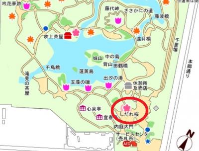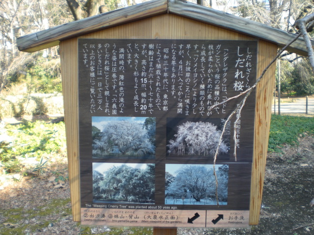 六義園のしだれ桜は、ソメイヨシノより早く、3月末から盛りを迎えます。