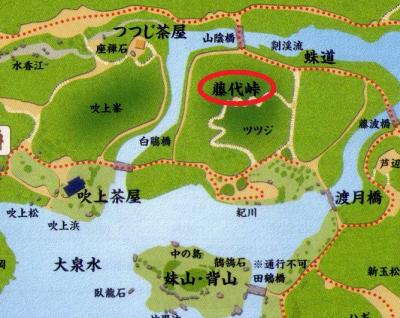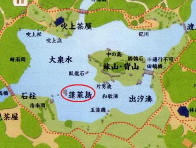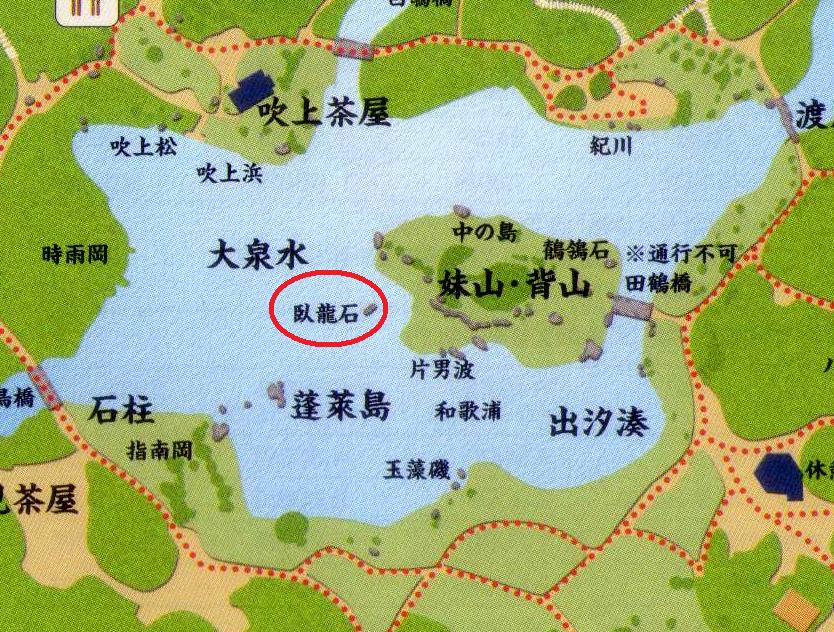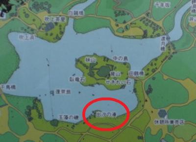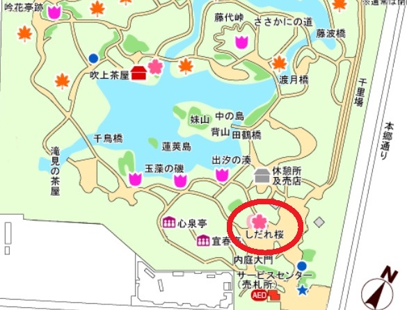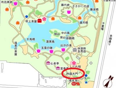 心泉亭の場所は、内庭大門の西側の奥にあります。