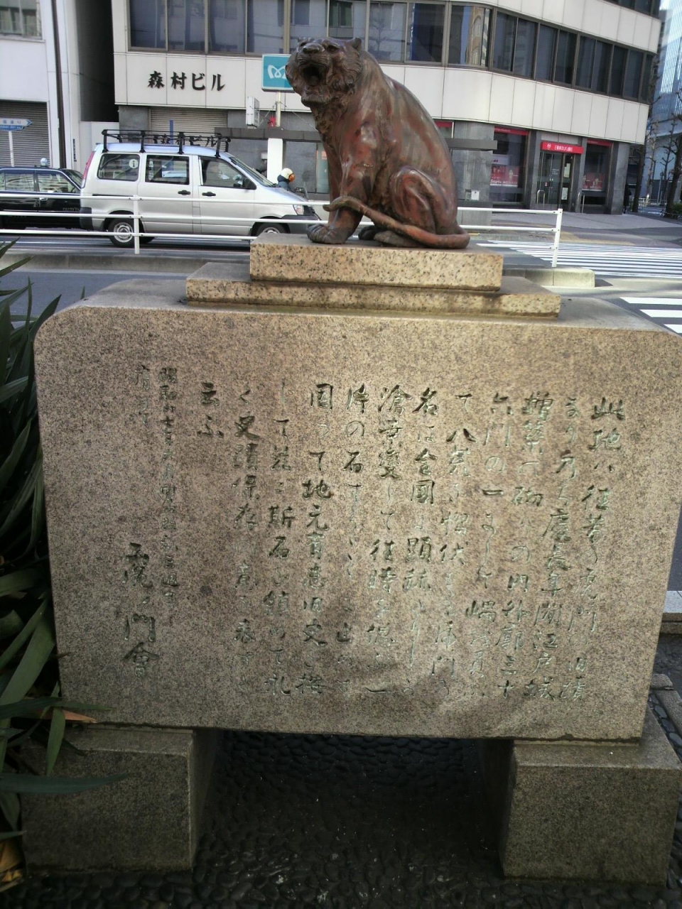 虎の像の名称は、石碑の標示によれば「虎ノ門遺跡」となります。
