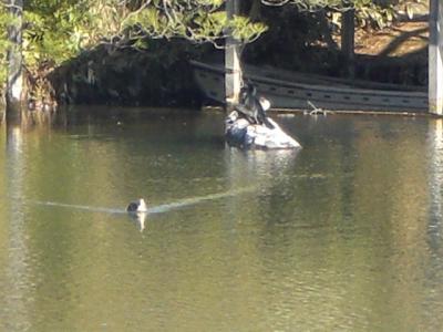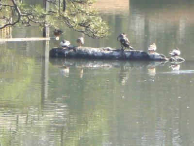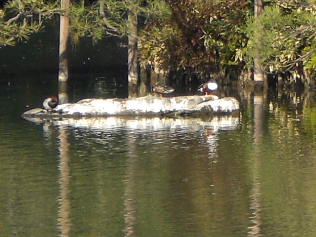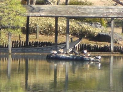 利用客は、茶席において抹茶や甘酒を吞みながら、中の島の風景を愛でつつ、池に遊ぶ水鳥を見て楽しみます。