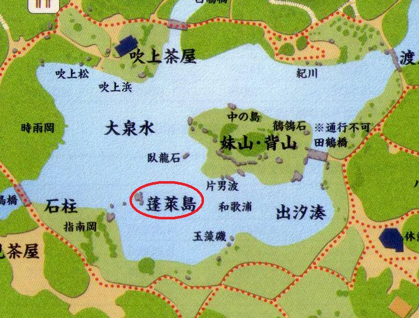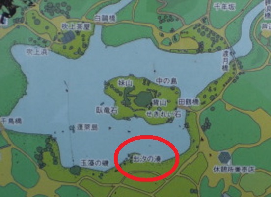 出汐湊は、六義園の池に河口から進み出る湊の様子を模しています。