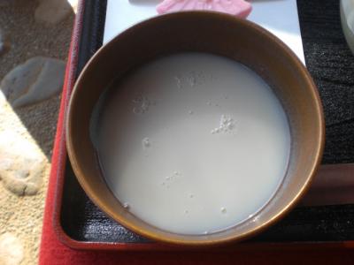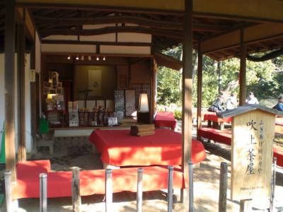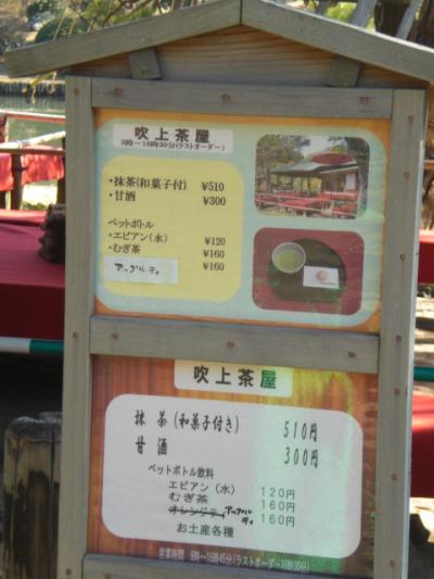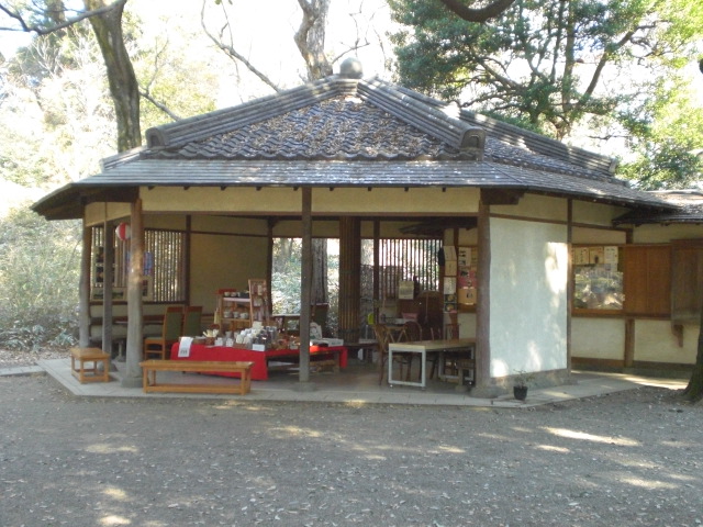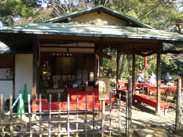 吹上茶屋は、六義園の池の岸辺にあるお茶、甘酒と和菓子を提供する茶店です。