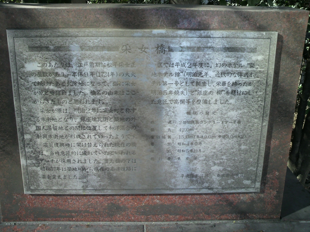 明治初期、築地の外国人居住地からの街並みが、釆女ケ原まで続いていたため、采女橋がかけられる際、和洋折衷の形状になったとされています。