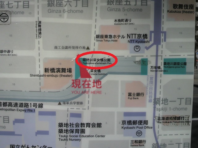 采女橋公園は、采女橋の北側にある公園で、新橋演舞場の東側約50mの所にある公園です。