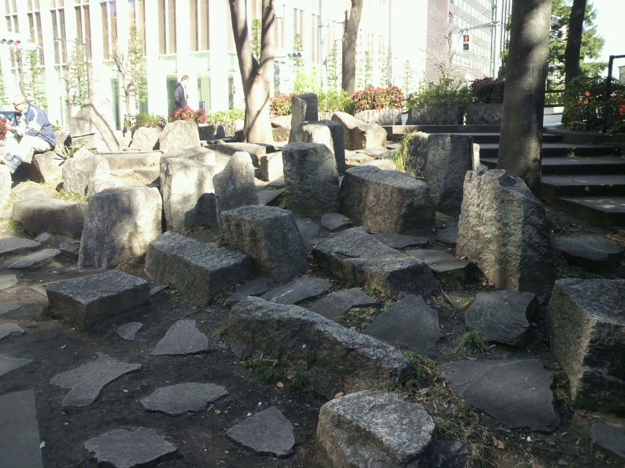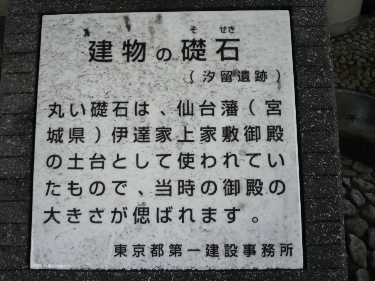 建物の礎石(汐留遺跡)は、汐留遺跡の発掘の際、伊達藩上屋敷から出て来たそうです。