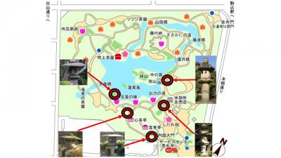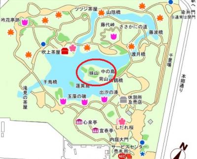 池の向うには、玉藻の磯や遠く心泉亭や宜春亭を望むことが出来ます。