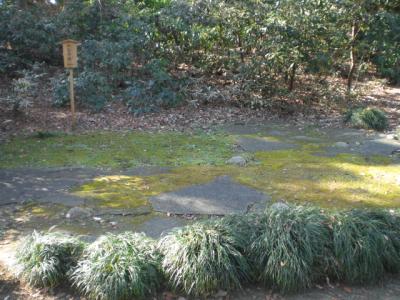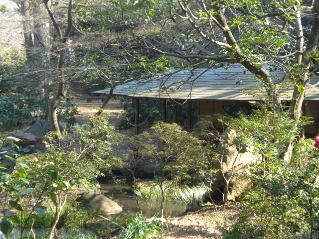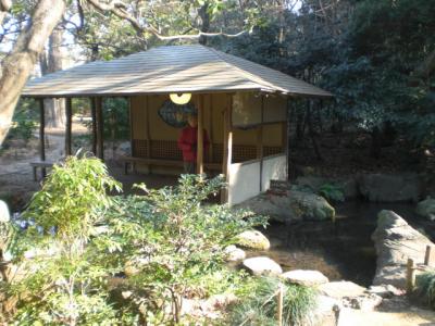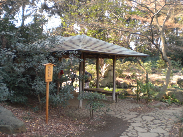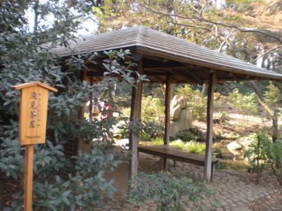 六義園の水源は、水分石と紀川上です。この水源の傍にあるのが滝見の茶屋です。