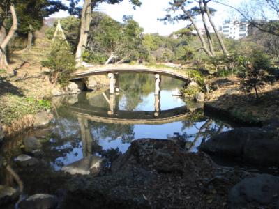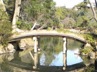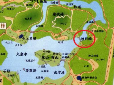 六義園の千鳥橋は、六義園中央の池を巡る橋のうち、最も西側の橋です。