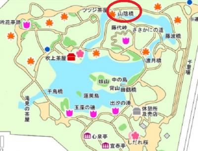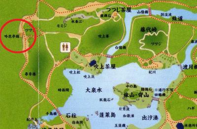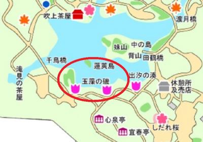 六義園の吟花亭跡は、六義園の園内の北西端に位置している場所です。
