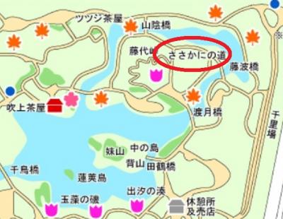 古今和歌集に詠まれた蜘蛛(ささかに)の道は、六義園の北側にあります。
