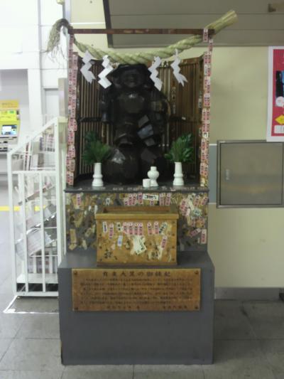 太平洋戦争末期、空襲を避けるため、有楽町駅に贈られ、やがて中央改札口に守護神として遷座されたとのことです。
