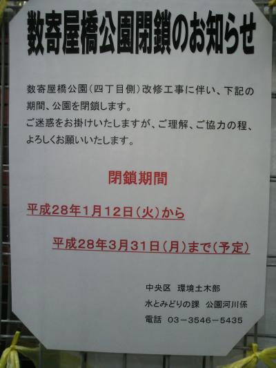 晴海通りの向かい側の数寄屋橋公園(西側)も工事中です。28年3月末までです。