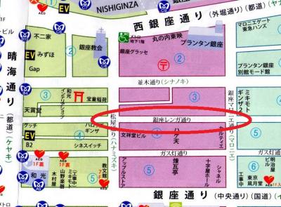 銀座レンガ通りには、晴海通りのキューピット、松屋通りのハロッズ、マロニエ通りのカルティエ等の有名地点が途中にあります。