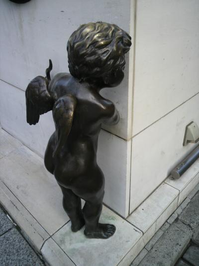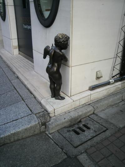 晴海通りにある銀座天賞堂の角に、小さなキューピッドの像が置かれています。