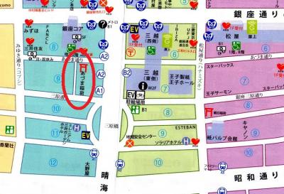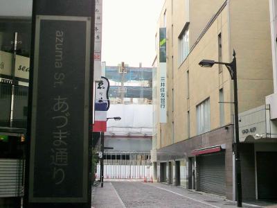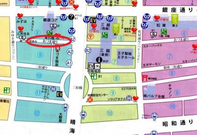 銀座のあづま通りは、銀座中央通りの1本東側の通りで、三越や松屋の裏手にある通りです。
