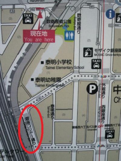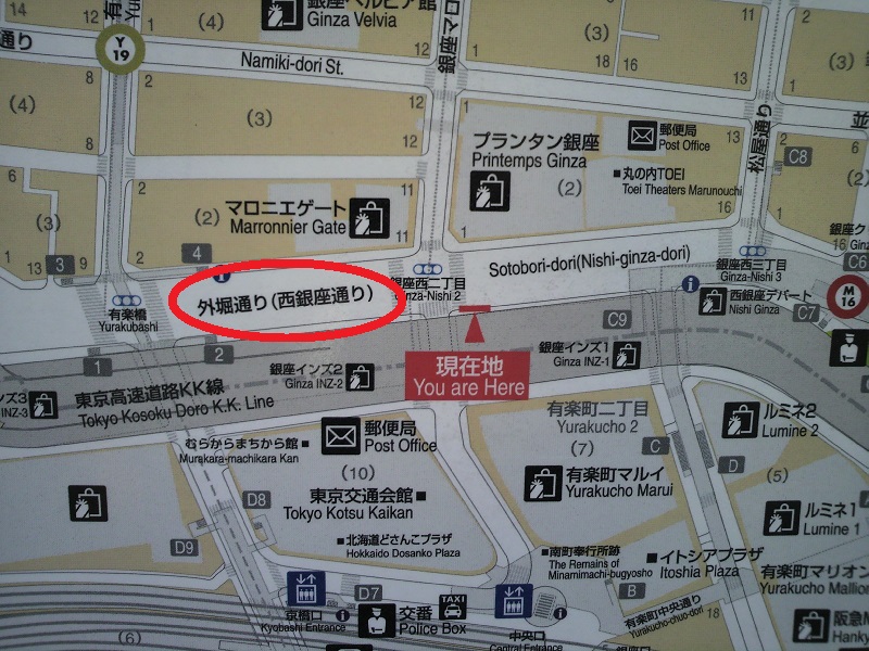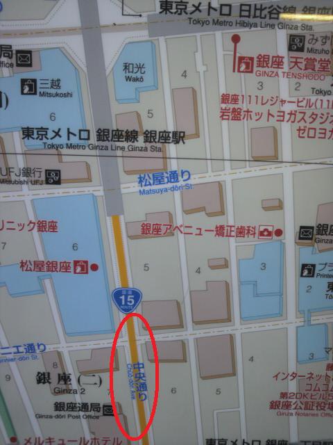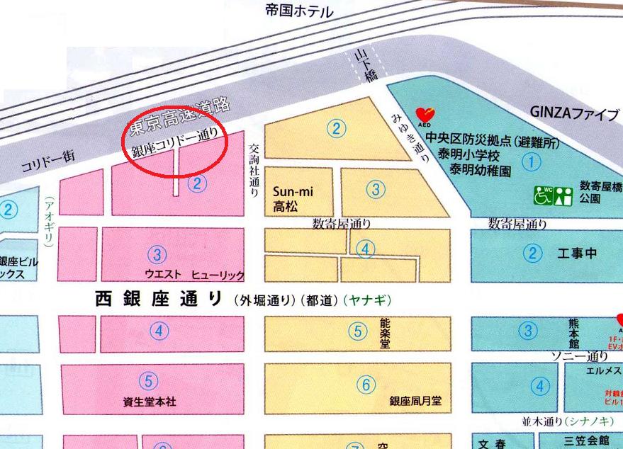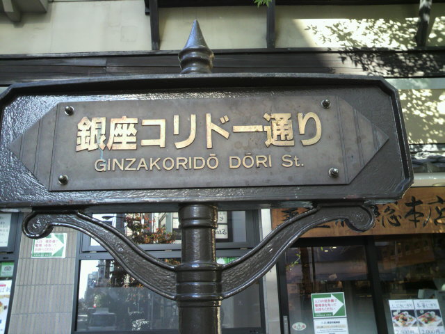 通りの現地の標識や銀座の観光案内所の地図には、銀座コリド―通りとなっています。
