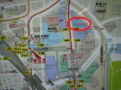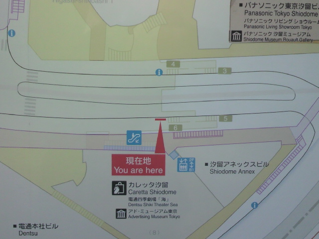 JR新橋駅の汐留口改札を出て、階段を下り、地下商店街に出て、そのまま、地下通路を直進し、しばらく歩くとカレッタ汐留に当たります。