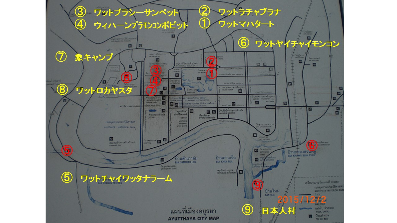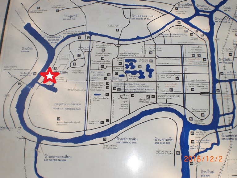 アユタヤの西側、チャオプラヤー川の東岸にあります。